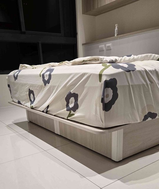 無框掀床於家具店購入,為白梧桐色