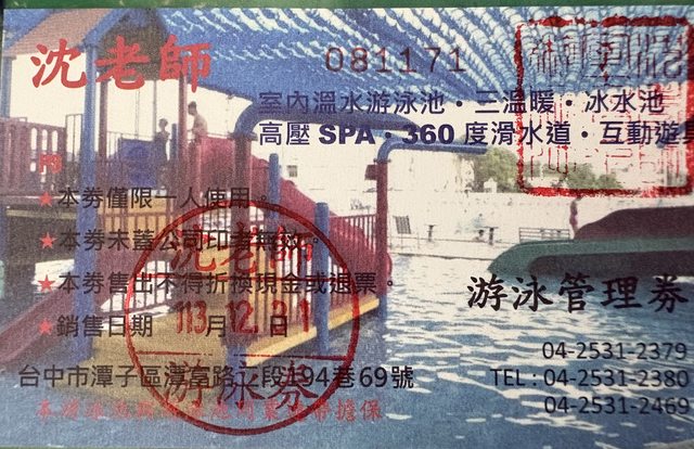 交換物品:潭子沈老師游泳池門票*5張