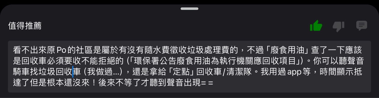 → dante95768: 的收廢油廠商 廠商會給少少的回收價101.137.191.139 11/16 20:49