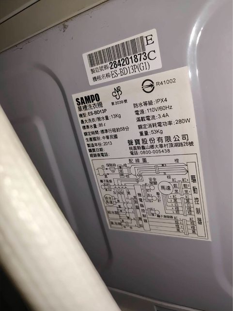 洗衣機(13公斤,聲寶ES-BD13P)
