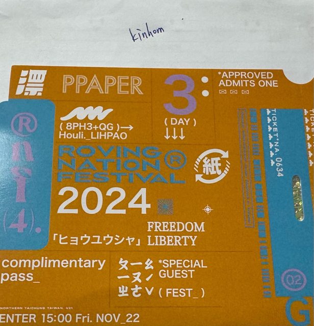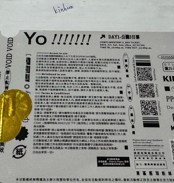 公關三日票 一張