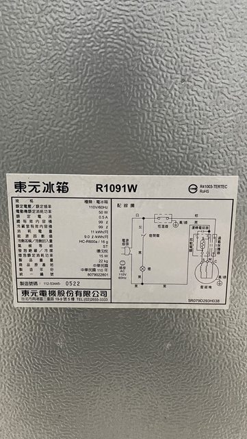 物品名稱:東元99L電冰箱