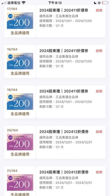 標題[商業] 王品12月 股東折價卷 滿千抵200