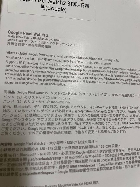 物品:Google Pixel Watch2 BT版-石墨黑