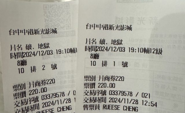 標題[贈送] 台中/新光影城破椰a獄特映一張
