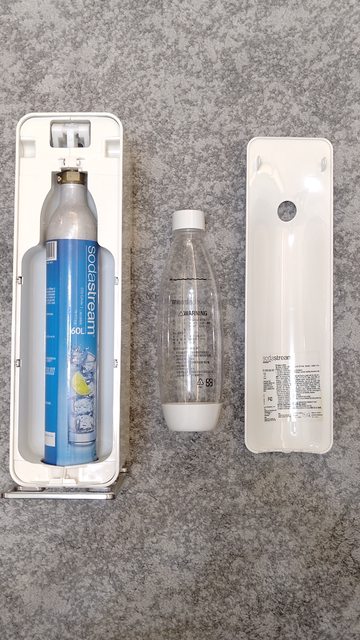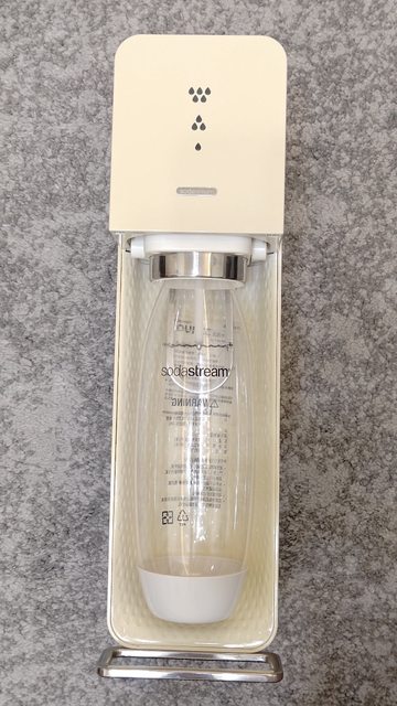 5.Sodastream Source 白氣泡水機,機身如照片所示泛黃,機身頂部有痕跡,附水瓶與原