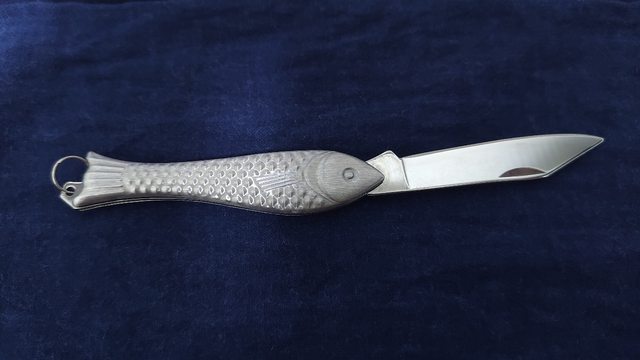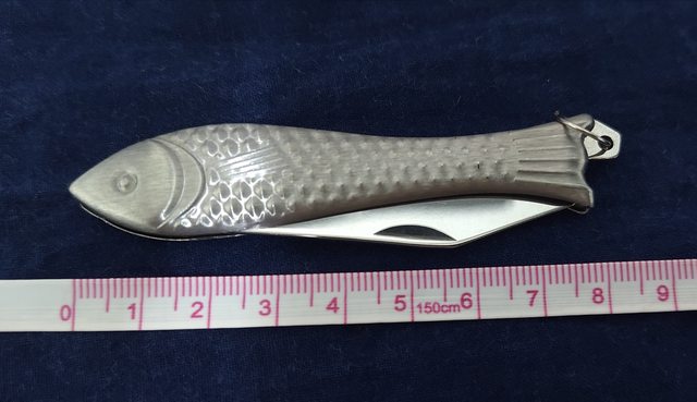 6. 金屬摺疊小魚刀 二手,精美簡單的摺疊小魚刀,近全新,收納時大約為8公分,適合