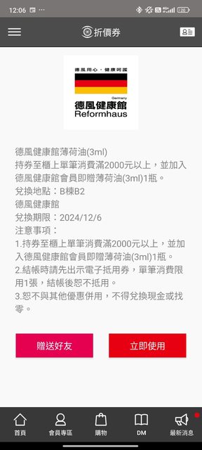 物品名稱:中友百貨優惠電子券 物品實照:見截圖 贈送規則: 1. 須有下載中友app 2. 請站內信告知需要哪一項,確定贈與會回覆,再提供手機電話。 3. 確定會使用者再來信索取。 4. 只回覆受贈者。