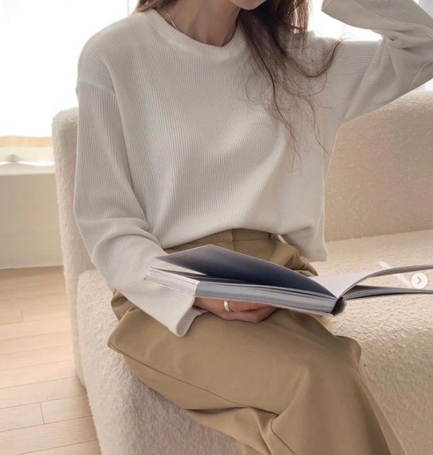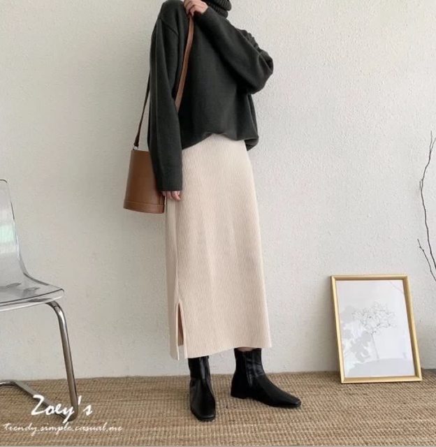 2. Zoey意外顯瘦!腰鬆緊直坑紋開衩裙 米 售450