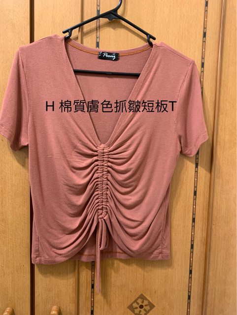 H 棉質膚色抓皺短板T