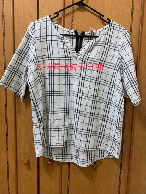 E 棉質格紋五分袖