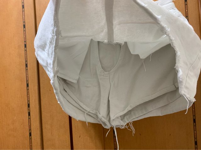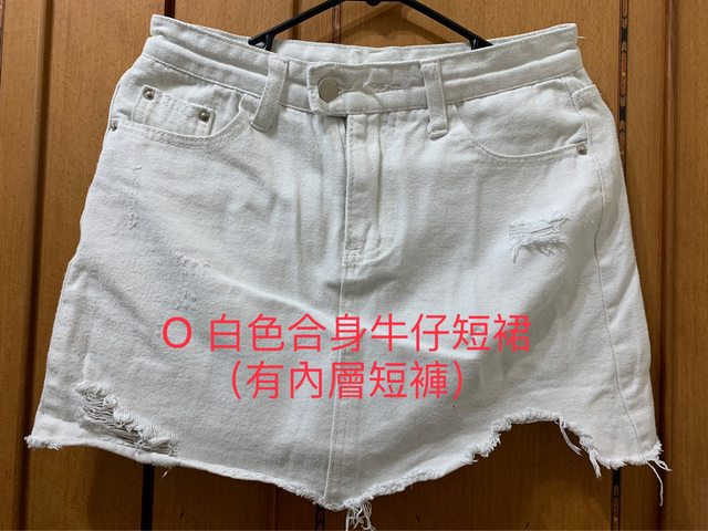 O 白色合身牛仔短裙(有內層短褲)