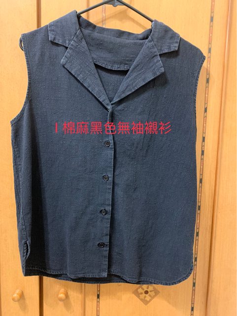 I 棉麻黑色無袖襯衫