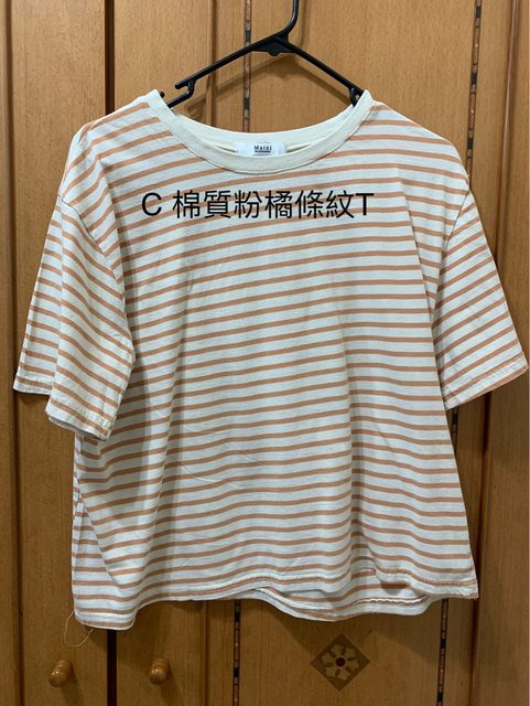 C 棉質粉橘條紋T