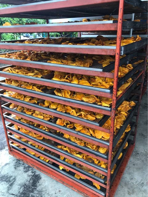 我們的芒果乾都是微糖的,芒果烘製的過程容易變硬,加入一些砂糖醃漬再烘製才能保有