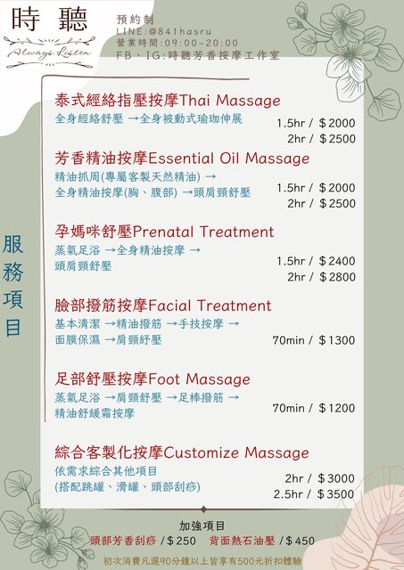 「您好,想預約4/1下午16:00精油2小時,請問這個時間可以預約嗎?」