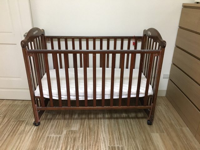 贈送恩典牌N手實木嬰兒床,組好會稍微搖晃不影響使用,兩側圍籬皆可放下,床板可調