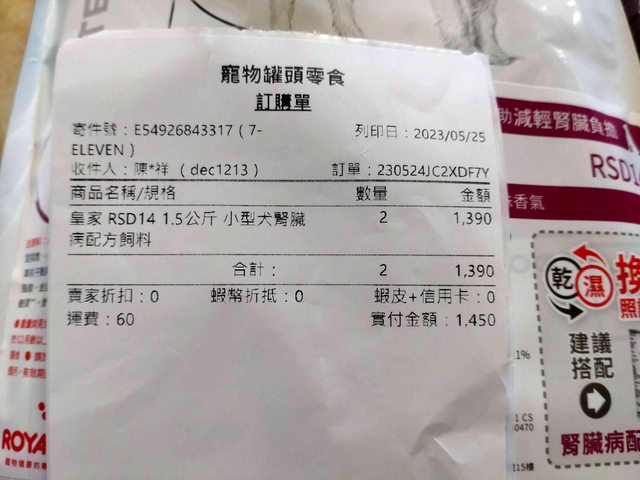 交易物品:全新 皇家小型犬腎臟飼料2包