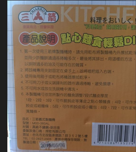 交易物品/金額/說明:製麵機2015年製造,放很久沒用過,售400元