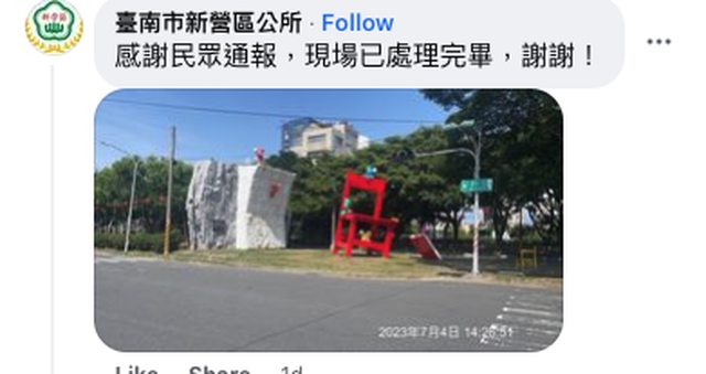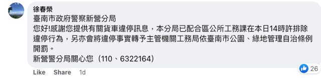 事後警方留言 + 公所表示已處理完畢