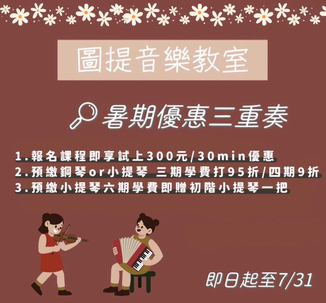 標題[自家] 圖提音樂教室 鋼琴小提琴 暑期優惠