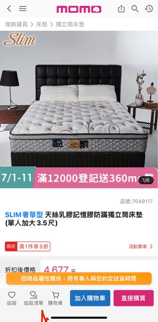 床墊資訊:【SLIM奢華型】天絲乳膠記憶膠防蹣獨立筒床墊(單人加大3.5尺)【4677元】