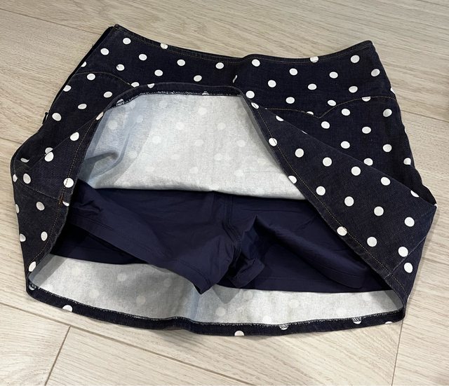 5.FFFF牛仔點點裙/100/質感佳,有內裡安全褲,側拉鍊,L號