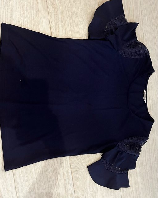 6.Poone 波浪鏤空蕾絲袖深藍上衣/100/專櫃購入,含棉65%,造型優雅,尺碼F