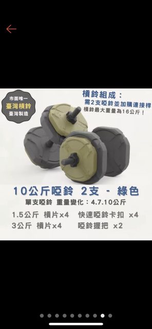 標題[交易] 出售快拆式可調整槓鈴 10公斤兩支