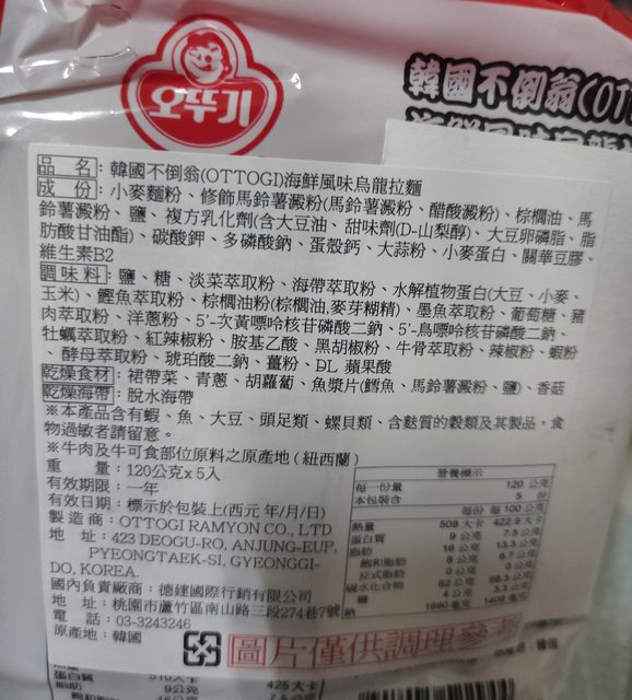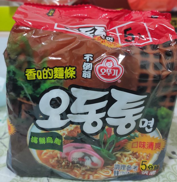 6. 不倒翁海鮮烏龍麵,一袋售120元,有效期限2024/4/3