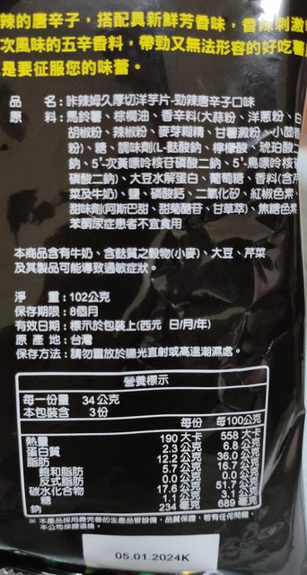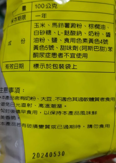 20. 小個子薯條72克有1包,一包售40元,有效期限2024/4/5