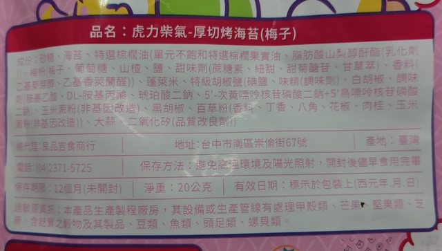 8. 厚切烤海苔20克有25包(梅子38 椒鹽8),1包售40元,有效期限2024/3/23