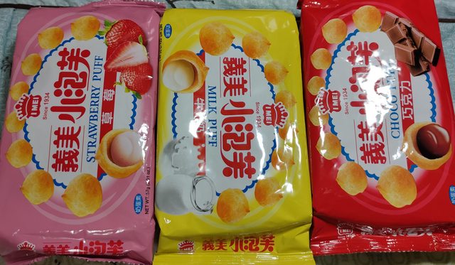 16. 義美小泡芙57克有13包(牛奶2 草莓7 巧克力4),一包售25元,有效期限2024/5/16 ,暫售出