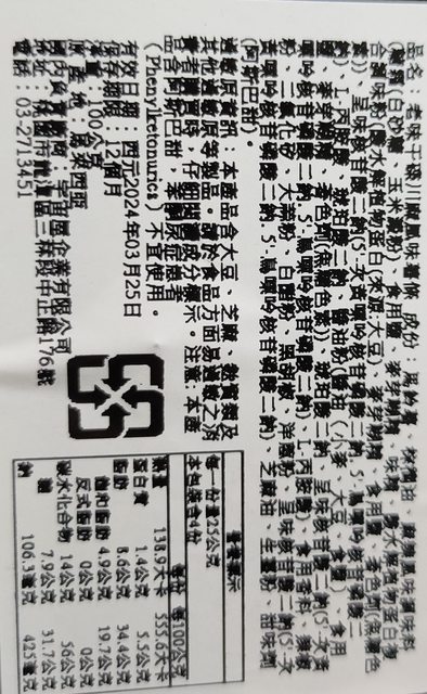 19. 香脆薯條100克有4桶,一桶售60元,有效期限2024/3/25