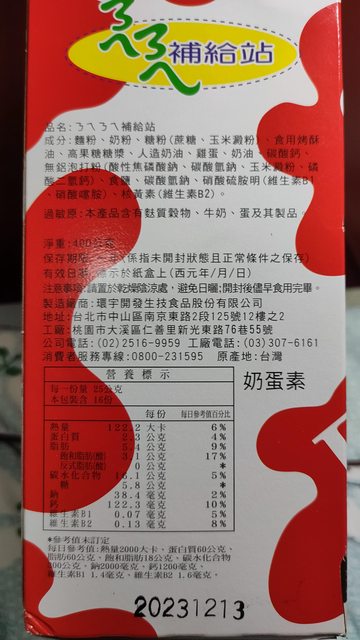 15. 內內補給站400克有2盒,一盒售100元,有效期限2023/12/13