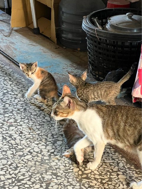 外公家一隻母貓跑來生了三隻幼貓,約一個多月大,外公對母貓有點感情了,今日把母貓