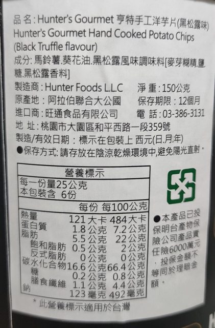 5.亨特手工洋芋片150克剩2罐(黑松露1 魚子醬0 鵝肝1),售150元,有效期限2024/5/9