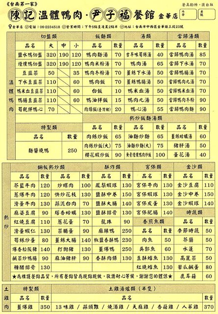 ▌陳記鴨肉詳細菜單