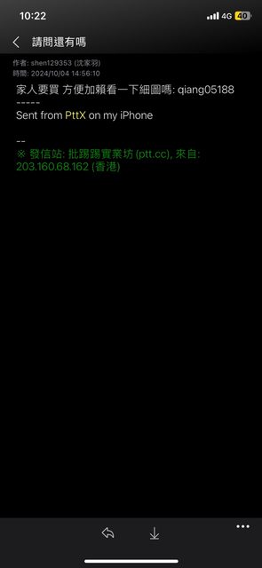 → xd4gsd4r: 賣個東西換了三個LINE ID.... 最一開始就很可疑了 10/05 10:09