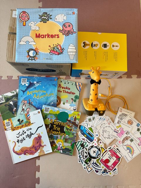 3. 近全新,ARpedia兒童虛實互動式英文學習繪本Into the Community(含長頸鹿Spotty