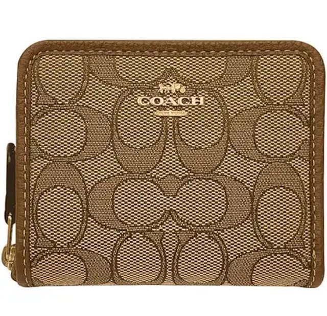 1.COACH 金字馬車緹花布拼皮革ㄇ形拉鍊短夾 卡其焦糖色 型號CH389 $2500