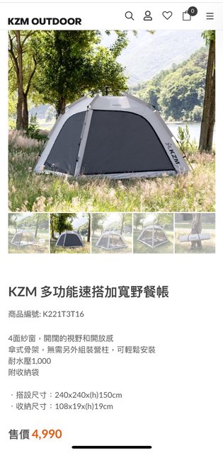交易物品/金額/說明: 全新KZM 多功能速搭加寬野餐帳