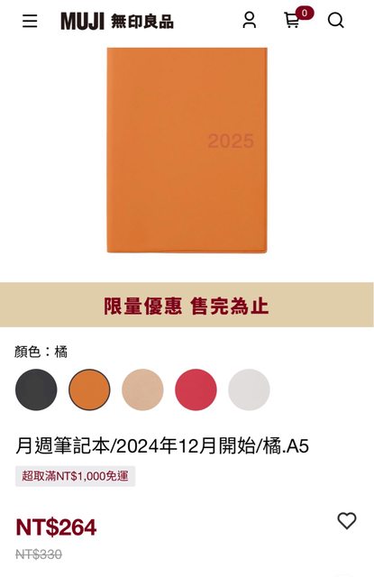 標題[徵求] 交換買錯尺寸無印良品月週記事本