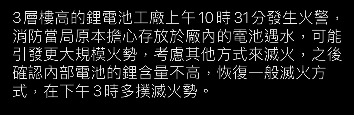 → VicLien : 我講的是所有火災 偷換概念一流 因為鋰電池工廠火 06/25 14:58