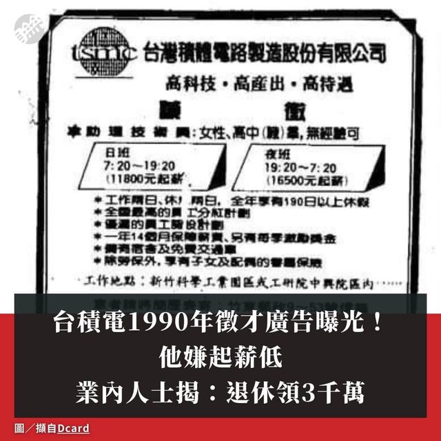 台積電1990年徵才廣告曝!他嫌起薪低 業內人士揭:退休領3千萬