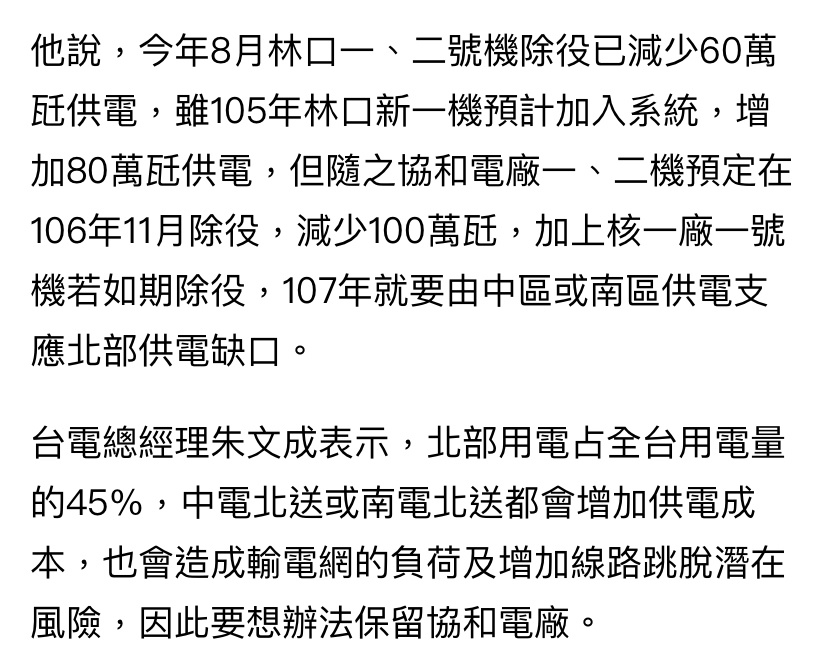 推 luche : 另外 桃園大潭電廠輸送到竹科的電力是不是可以拿掉 08/17 12:24
