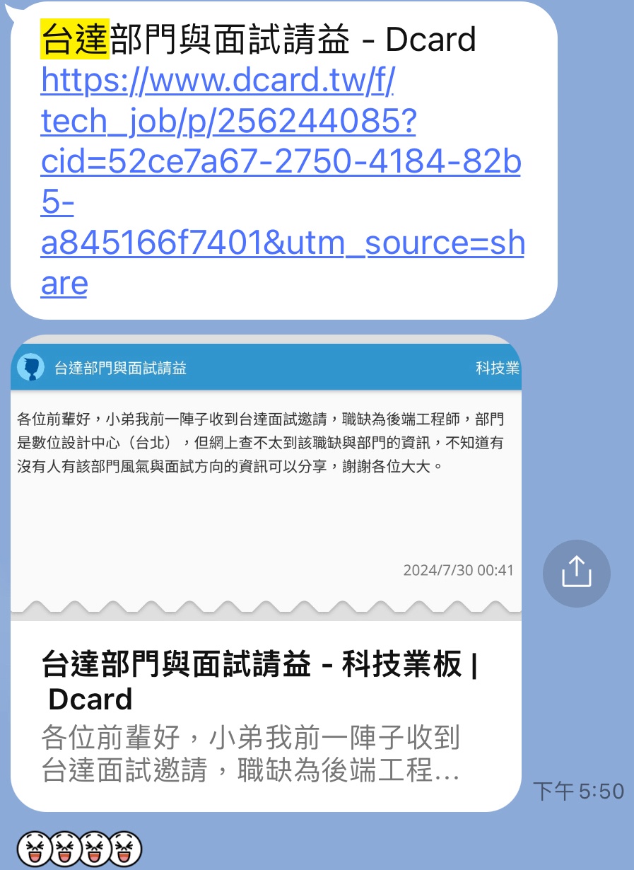 → gearms : 內部有群組 看到網路上有人在問台達offer還會貼在群 09/09 09:04