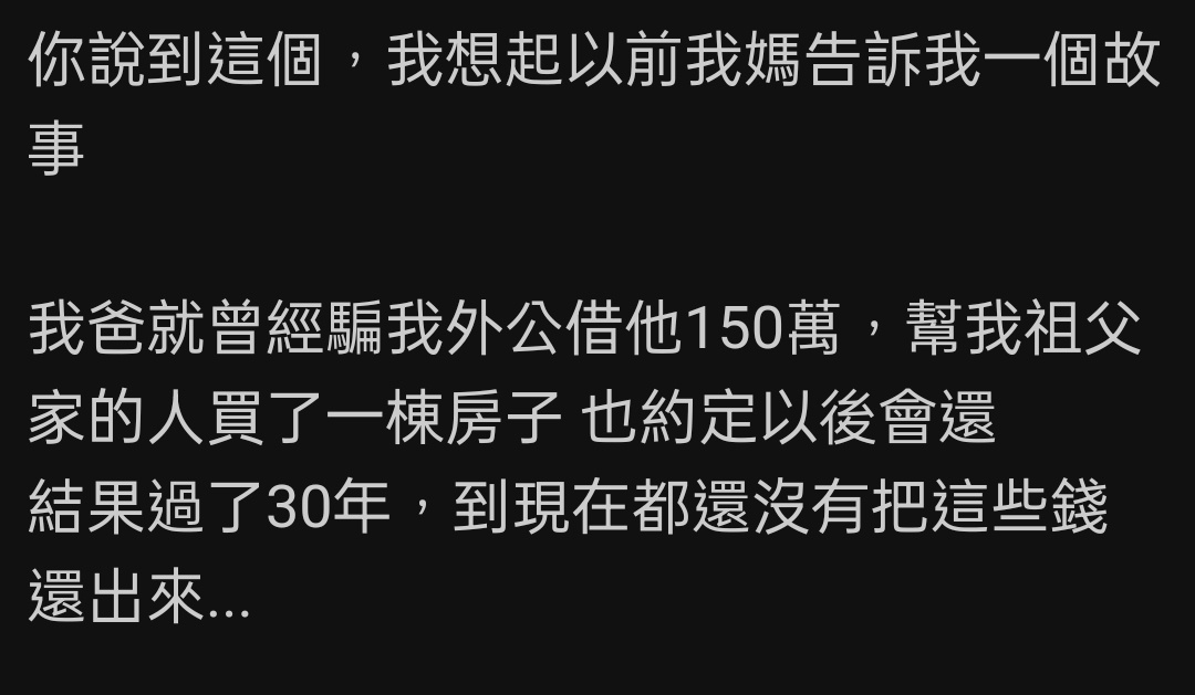 → boalover : 哥的爸爸還欠岳父150萬沒還,但無業哥依然每個月跟 10/04 17:04