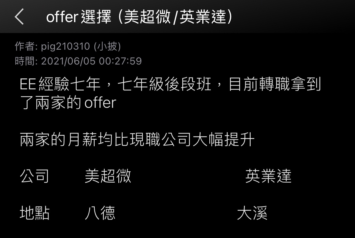 → lobolin : 二三線廠 查一下offer文就知道了 會去這間的素質.. 11/19 11:11