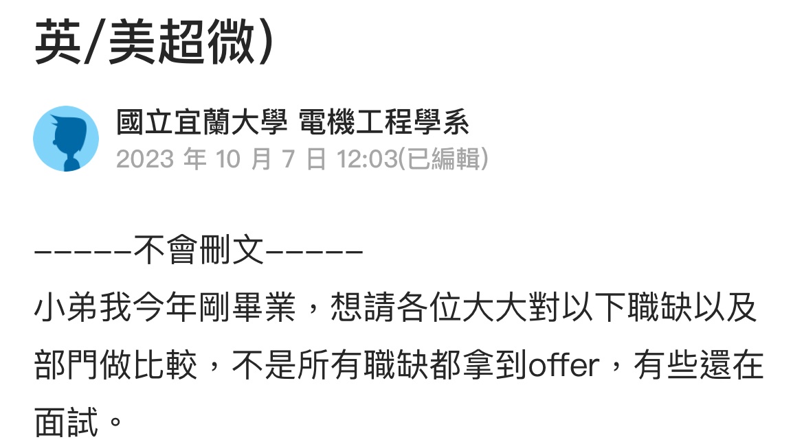 → qmei999 : 生 沒聽過才好笑 不要出來丟人現眼了 是拿不到offer 11/19 10:55